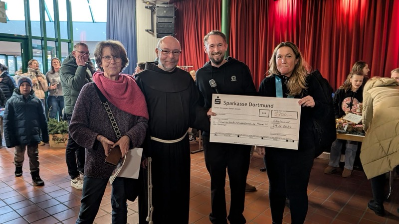 Mit dem Reinerlös wird wie in jedem Jahr unsere Partnerschule in Brasilien unterstützt. Den Dank dafür überbrachte Bruder Augustinus, der den Kontakt zu der Schule aktiv unterstützt. Ein Teil des Erlöses geht in diesem Jahr an ein weiteres soziales Projekt: Das SOS-Kinderdorf Dortmund.