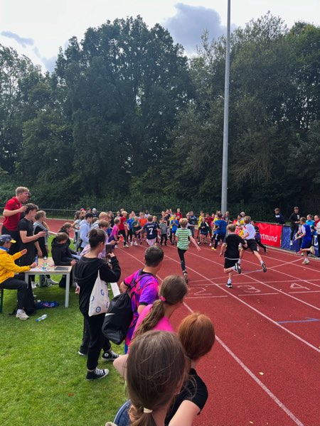 Ein besonderes Highlight bot hierbei erneut das Sprintfinale (s. Foto), das jahrgangsweise die schnellsten sechs Mädchen und Jungen der Vorläufe durchführten.
