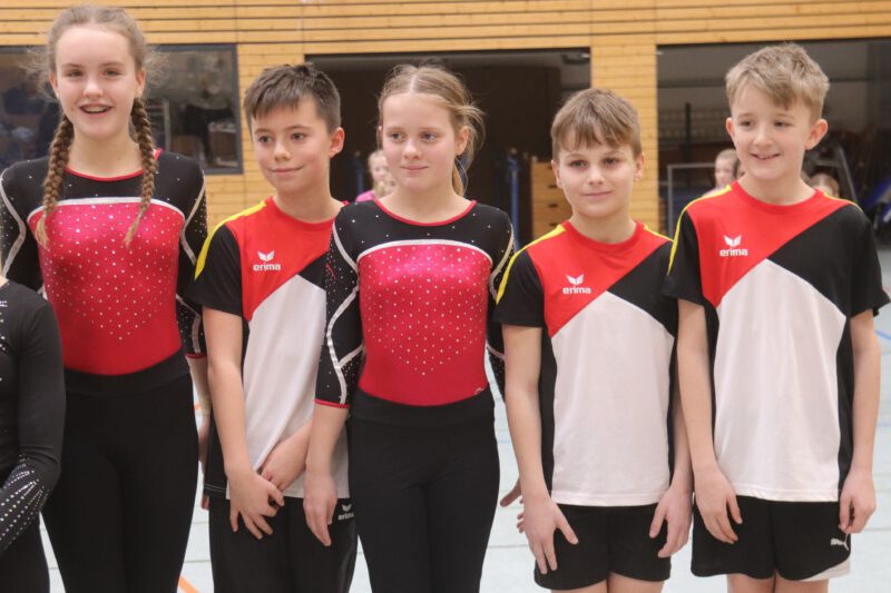 Im Vielseitigkeitswettkampf der U14 starteten Alisa Chezhina, Emma Clarke, Anni Hoffmann, Lilly Duwenbeck, Ella Frank und Paula Menne.